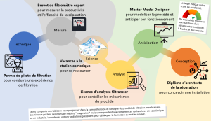 Ce jeu sérieux sur les procédés membranaires comporte 3 tableaux pour évoluer progressivement depuis des questions et connaissances techniques vers des notions scientifiques (comme l'osmose) avec des ressources (texte et vidéo) puis des quiz qu'il faut réussir pour "gagner" des points et passer au niveau supérieur. Il permet également une formation introductive à Python pour le calcul scientifique.